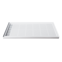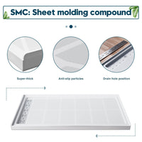 SUNNY SHOWER 32 in. D x 4 in. H White Left Drain Rectangular Base Designed with your safety in mind, this base features an anti-slip granule surface to prevent slips and falls, even when you're not wearing shoes. Its left drain location ensures efficient water drainage, allowing you to shower with ease and without affecting your bathing experience.