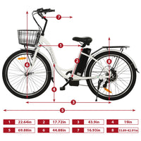 Ecotric 26 Inch 36 V 10 AH 350 W City Bike Electric Bicycle e-bike White with Basket 7 Speed Step Through Commuter for Women Girls A-E516646