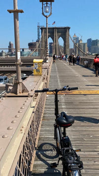 It's small, narrow, and foldable. Its upper tube and the handlebar stem can be foldable. The aluminum alloy frame makes the whole bike very light but reliable. So it's easy to fold and easier to carry.