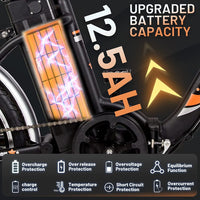 - CONVENIENT - As a very small 20" electric bike for adults, it only has 53.35lbs, with the 36V 12.5AH Large Removable Lithium Battery. Smoothly, quietly, and lightly, commute to work or other places in the city would be convenient. Easy to charge the UL certified battery anywhere. Say goodbye to traffic jams.