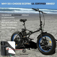 Ecotric Electric Fat Tire Bicycle Folding Bike 12Ah 36V 500W Lithium Battery Beach Snow Mountain 20 In. E Bike Moped (Black & Blue)