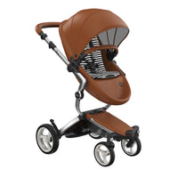 The Mima Xari 4G Completer Stroller is an iconic elite pushchair offering enhanced unique features. This stroller includes a newborn cot and toddler seat capable of transition in 3 recline levels, both in parent and street-facing position. The sun canopy, the bassinet, and the seat comprise enhanced vegan leather that easily wipes clean. The complete stroller is equipped with a comfortable mattress and from-birth starter kit in several eye-catching prints. In addition, the adjustable seat height, harness straps, handlebar, and bumper bar create a custom fit that contours to parents' individual needs. When the bumper bar is upright, easily remove the seat for a simple freestanding compact fold. A functional carry strap is provided for practical travel.