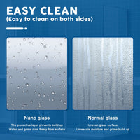 3/8"(10mm) thick tempered safety glass with ANSI Z97.1 certified, safer and sturdier. Large solid stainless steel rollers creating a quiet, smooth and effortless sliding.