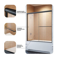 ELEGANT Bathtub Double Sliding Door 60 in. W x 58 in. H Black Finish