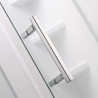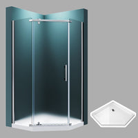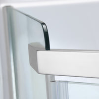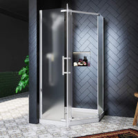 Frosted Chrome Finish Pivot Enclosures with Sliding Doors and White Quadrant Bases is a trendy and practical option for those looking for a shower enclosure that maximizes space and adds a touch of style to their bathroom.