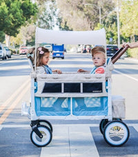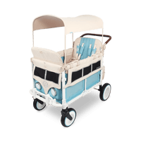 Stroller wagons just got a little more groovy. Inspired by the vintage VW bus, our new special edition stroller wagon will fulfill your nostalgic fantasies with all those classic WonderFold elements. It includes features like the classic VW bumper, functioning headlights, and retro all-terrain XL wheels!